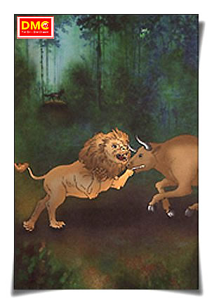 จึงกราบทูลว่า ข้าแต่สมมติเทพ ข้าพระองค์ไม่ได้เห็นอะไรๆ อย่างอื่น แต่ได้เห็นราชสีห์ตัวหนึ่งกับโคผู้ตัวหนึ่ง สนิทสนมกันและกันเที่ยวไปด้วยกัน พระราชาตรัสว่า เมื่อสัตว์ตัวที่สามเกิดขึ้นแก่สัตว์ทั้งสองเหล่านั้น ภัยจักบังเกิดมี เมื่อใดท่านเห็นสัตว์ตัวที่สามเพิ่มขึ้นแก่สัตว์ทั้งสองนั้น เมื่อนั้นท่านพึงบอกเรา นายพรานป่านั้นทูลรับว่า ได้พระเจ้าข้า ก็เมื่อพรานป่าไปเมืองพาราณสีแล้ว มีสุนัขจิ้งจอกตัวหนึ่งเข้าไปบำรุงราชสีห์และโคผู้ นายพรานป่าไปป่า ได้เห็นสุนัขจิ้งจอกนั้นคิดว่า จักกราบทูลความที่สัตว์ตัวที่สามเกิดขึ้น แล้วแก่พระราชาจึงได้ไปยังพระนครพาราณสี สุนัขจิ้งจอกคิดว่า เว้นเนื้อราชสีห์และเนื้อโคผู้เสีย ขึ้นชื่อว่าเนื้ออื่นที่เราไม่เคยกิน ไม่มี เราจักยุยงทำลายสัตว์ทั้งสองนี้แล้วกินเนื้อสัตว์ทั้งสองนี้ สุนัขจิ้งจอกนั้นจึงยุยงสัตว์ทั้งสองนั้นให้ทำลายกันและกันโดยพูดว่า ผู้นี้พูดอย่างนี้กะท่าน ผู้นี้พูดอย่างนี้กะท่าน ไม่นานนักก็ได้ทำให้ถึงแก่ความตาย เพราะทำการทะเลาะกัน ฝ่ายพรานป่ามาถึงแล้วกราบทูลแก่พระราชาว่า ข้าแต่สมมติเทพ สัตว์ตัวที่สามเกิดขึ้นแล้วแก่ราชสีห์และโคผู้เหล่านั้น พระราชาตรัสถามว่า สัตว์ตัวที่สามนั้น คืออะไร? พรานป่ากราบทูลว่า สุนัขจิ้งจอกพระเจ้าข้า พระราชาตรัสว่า สุนัขจิ้งจอก จักยุยงทำลายสัตว์ทั้งสองนั้นให้ตาย พวกเราจักไปทันในเวลาสัตว์ทั้งสองนั้นจะตาย จึงเสด็จขึ้นทรงราชรถเสด็จไปตามทางที่พรานป่าชี้ แสดงให้ เสด็จไปทันในเวลาเมื่อสัตว์ทั้งสองนั้นทำการทะเลาะกันและกันแล้วถึงแก่สิ้นชีวิตไป สุนัขจิ้งจอกมีใจยินดีกินเนื้อราชสีห์ครั้งหนึ่ง กินเนื้อโคผู้ครั้งหนึ่ง พระราชาทรงเห็นสัตว์ทั้งสองนั้นถึงความสิ้นชีวิตไปแล้ว ทรงประทับยืนอยู่บนรถนั่นแล เมื่อจะตรัสเจรจากับนายสารถี จึงตรัสคาถาเหล่านี้ว่า : [๖๙๔] ดูกรนายสารถี สัตว์ทั้ง ๒ นี้ ไม่ได้มีความเสมอกันเพราะสตรีทั้งหลายเลย ไม่ได้มีความเสมอกันเพราะอาหารเลย ภายหลัง เมื่อสุนัขจิ้งจอก ยุยงทำลายความสนิทสนมกันเสียจนถึงให้ตาย ท่านจงเห็นเหตุนั้นซึ่งฉันคิดไว้ถูกต้องแล้ว. [๖๙๕] พวกสุนัขจิ้งจอกพากันกัดกินโคและราชสีห์ เพราะคำส่อเสียดใด คำส่อเสียดนั้น ย่อมเป็นไปถึงตัดมิตรภาพเพราะเนื้อ ดุจดาบคม ฉะนั้น. [๖๙๖] ดูกรนายสารถี ท่านจงดูการนอนตายของสัตว์ทั้ง ๒ นี้ ผู้ใด เชื่อถือถ้อยคำของคนส่อเสียด ผู้มุ่งทำลายความสนิทสนม ผู้นั้น จะต้องนอนตายอย่างนี้. [๖๙๗] ดูกรนายสารถี นรชนเหล่าใด ไม่เชื่อถือถ้อยคำของคนส่อเสียด ผู้มุ